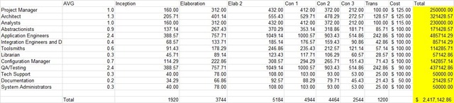 The next step is to provide an average load by resource (initially equally balanced across the project to drive the cost numbers on a fixed run rate) and then load the resources to the average by phase (keeping costs in-line with the standard).